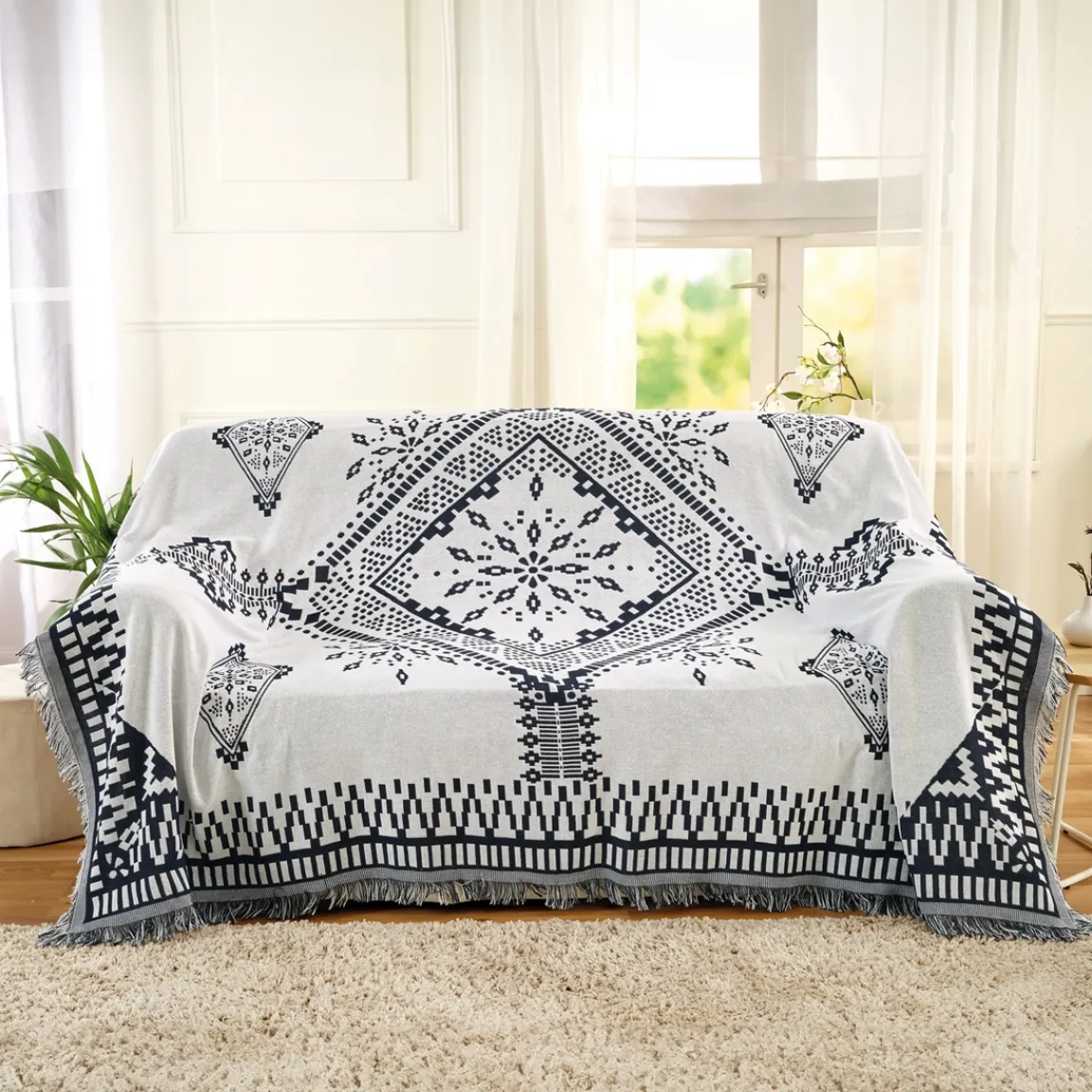 Pour protéger ou rénover joliment votre salon, adoptez ce ravissant couvre canapé bicolore ! De grande taille, il s’adapte à la majorité des canapés et fauteuils. Jolie finition frangée.