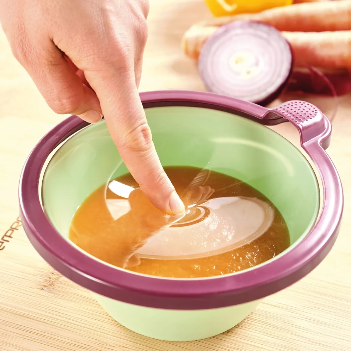 Ces couvercles vont prolonger la fraîcheur de vos denrées ! Il suffit de poser le couvercle sur un plat, un bol ou un saladier. Appuyez au centre pour chasser l’airet voilà, votre récipient est hermétiquement fermé. Les saveurs et les arômes se conserveront parfaitement et plus longtemps !
