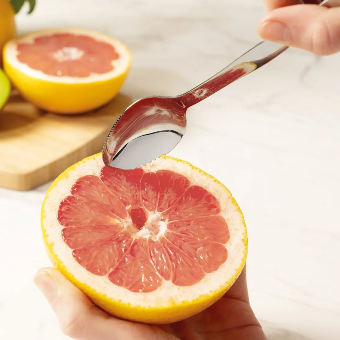 Dégustez votre fruit en toute simplicité grâce à ces cuillères dentelées spécialement conçues pour extraire la chair délicatement, sans abîmer le fruit.