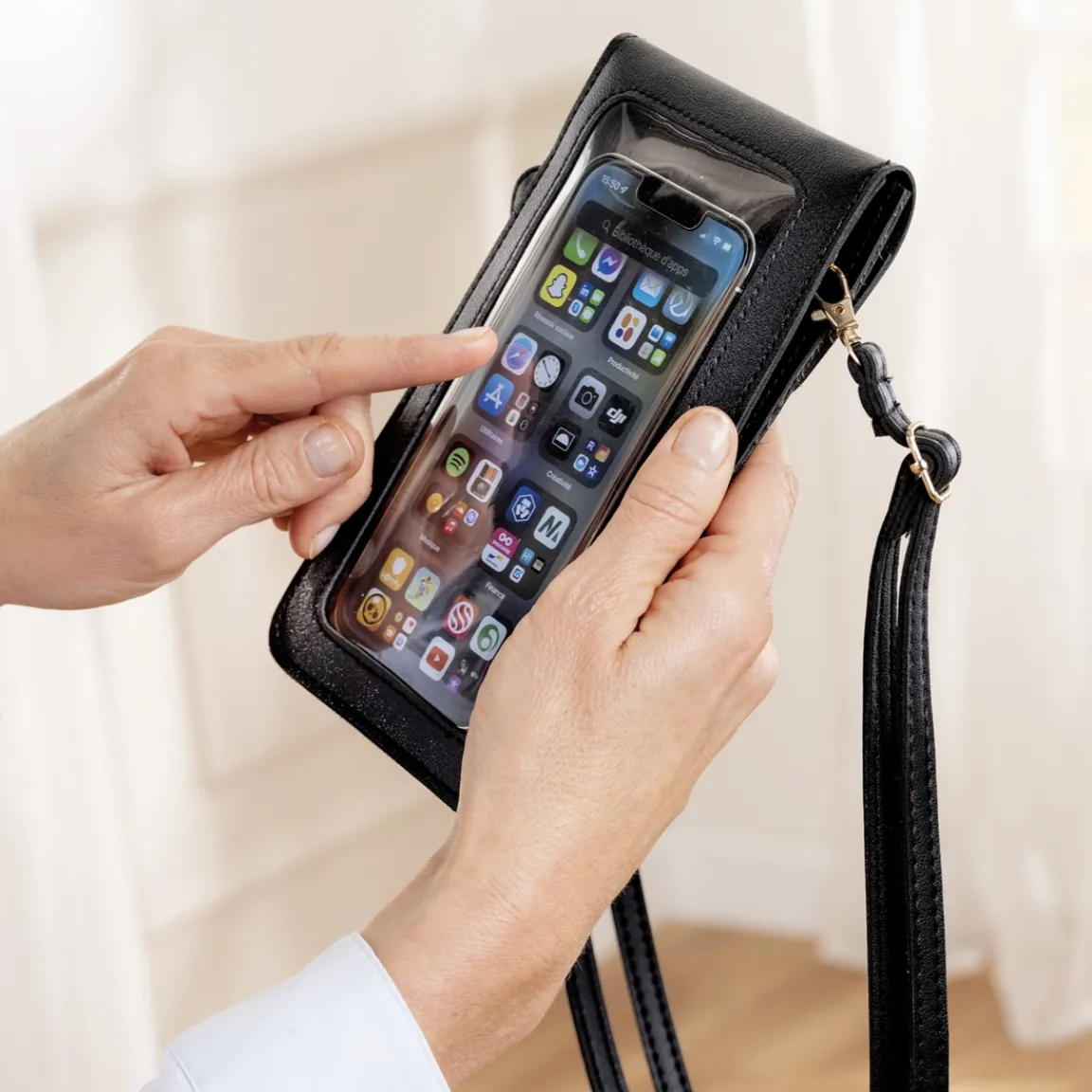 Une petite pochette, qui vous accompagnera partout et qui vous permettra d’emmener avec vous, votre smartphone et vos affaires indispensables (cartes, papiers d’identité, mouchoirs, monnaie, …). Pratique, avec son dos transparent, vous pourrez même utiliser votre smartphone, sans devoir le sortir de votre sac ! Boucle de fermeture. Anse amovible. En synthétique. Dim. 18,5 x 11 cm.