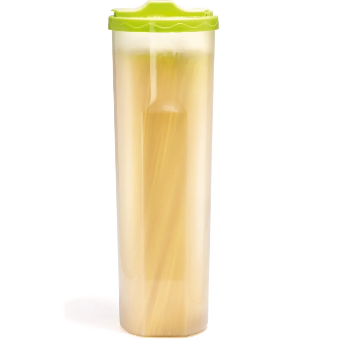 Fini le problème des sachets de spaghettis qui se déchirent transformant votre placard en champ de bataille… grâce à cette boîte, les spaghettis restent bien rangés et en plus, vous pourrez cuire la dose précise dont vous avez besoin. Le couvercle doseur distribue en effet 100 ou 200 g soit 1 ou 2 portions.