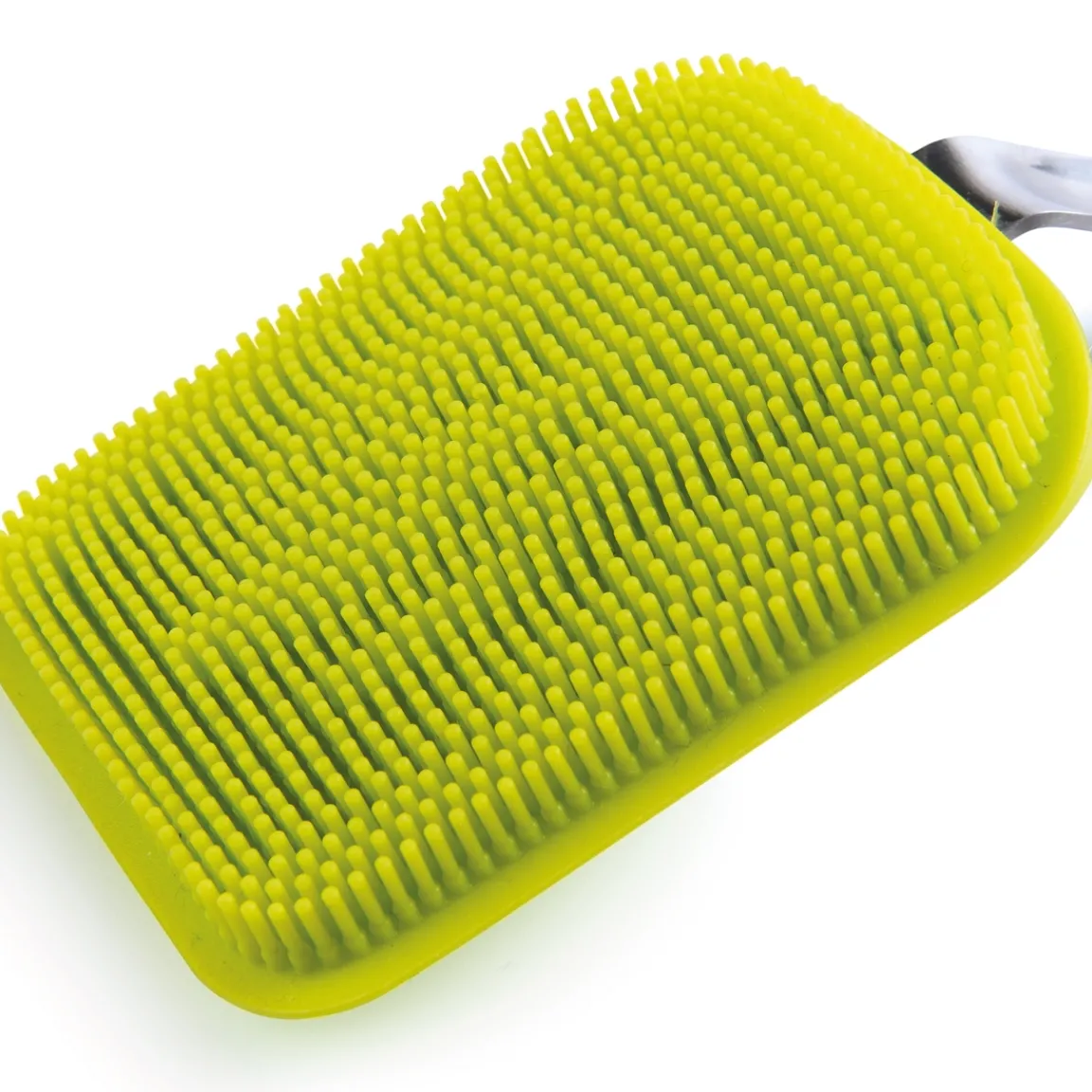 Enfin un ustensile efficace pour décoller les aliments qui ont attaché en cuisant ou qui ont séché dans les plats ! Les petits picots de cette brosse font du bon travail et son extrémité est idéale pour râcler et évacuer les résidus. De plus, la forme incurvée du manche vous donne de la force pour appuyer. Peut s’utiliser quand les plats sont encore chauds. En silicone et acier inoxydable. Long. totale 24 cm env., brosse 6,2 x 8 cm env.