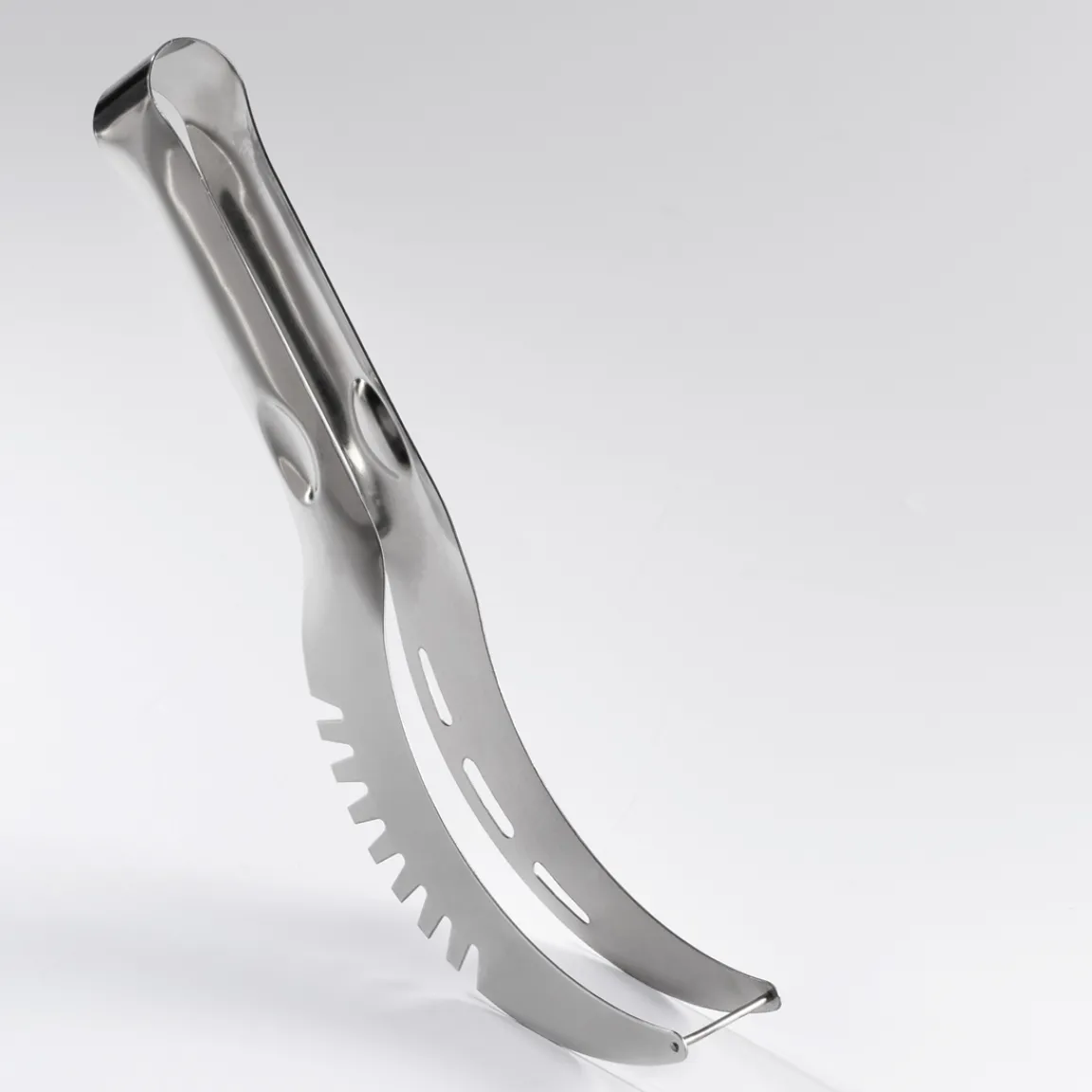 Si la pastèque c’est l’aliment de l’été par excellence, elle reste compliquée à couper et à préparer. Une prise en main compliquée due à sa taille ronde, du jus… Rien n’est simple. Avec l’aide de cette pince pratique et ingénieuse, vous pourrez sans effort découper de jolies parts de pastèque, facilement ! Bon appétit !