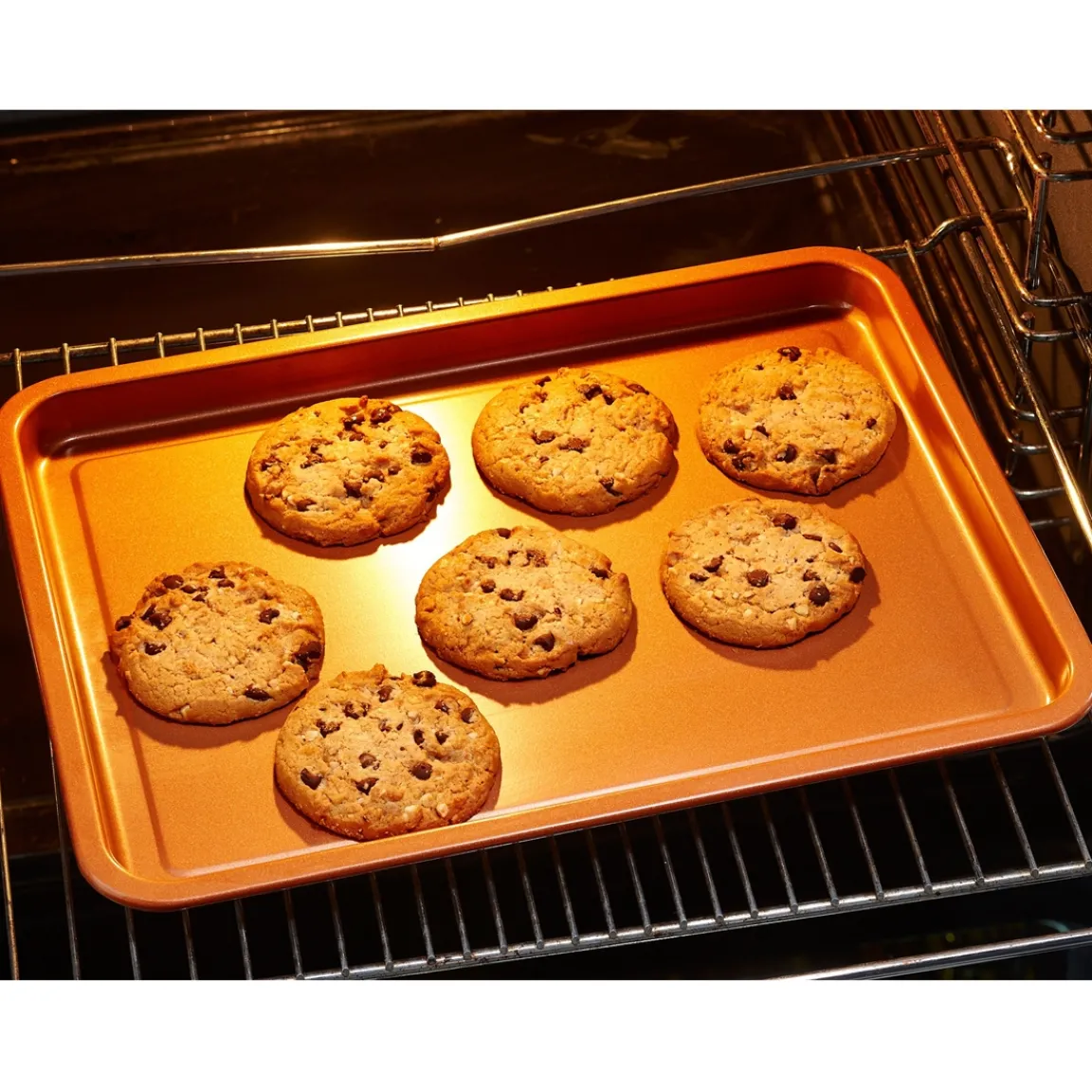 Faites cuire de façon plus saine vos aliments : sans matière grasse, ce plat en métal cuivré permet une diffusion homogène de la chaleur, pour une cuisson réussie. Placés dans le panier surélevé, les aliments bénéficient de la chaleur tournante et cuisent sans que vous ayez besoin de les retourner. Les graisses tombent dans le plateau et votre four reste propre.