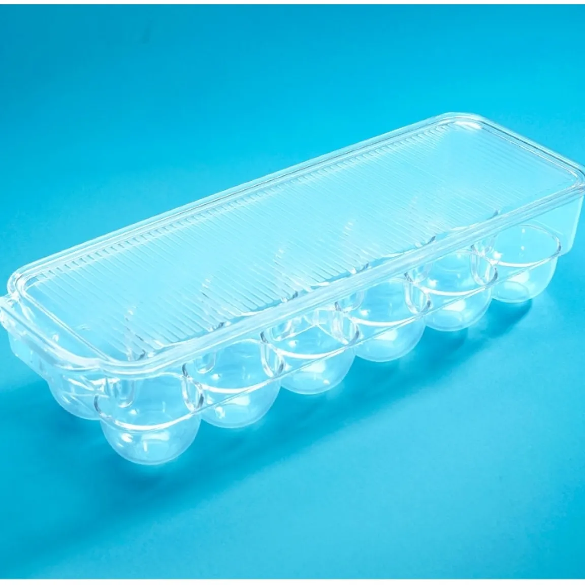 Avec cette boîte rigide transparente, on voit toujours combien d’œufs il reste ! Son couvercle plat protège parfaitement vos œufs des chocs et vous fait gagner de la place dans le frigo car il permet de superposer d’autres aliments.