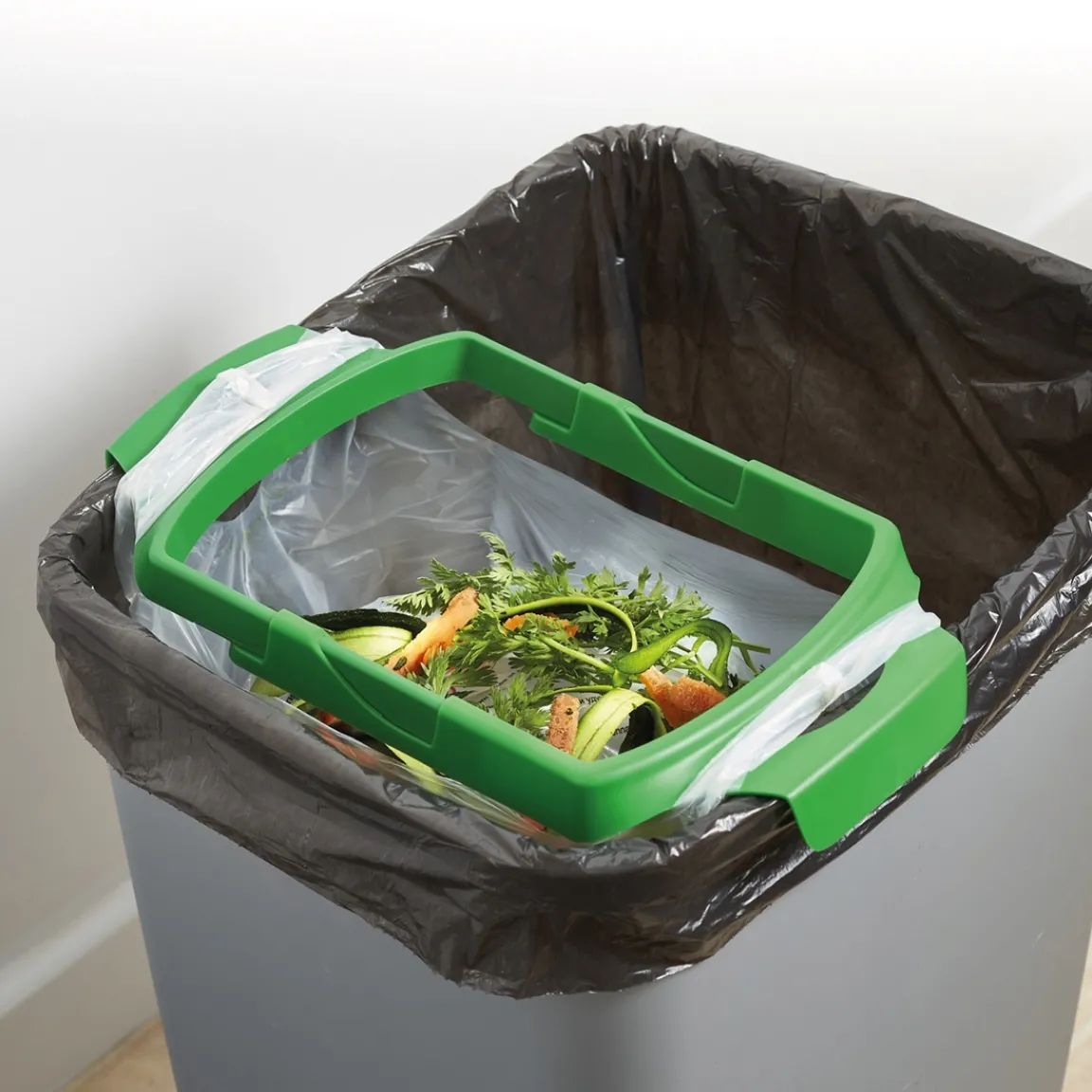 Avec ce support rectangulaire, le sac reste bien en place et vous pouvez bénéficier d’un compartiment séparé pour le compost, au sein même de votre poubelle familiale. Un ustensile pratique et réutilisable.
