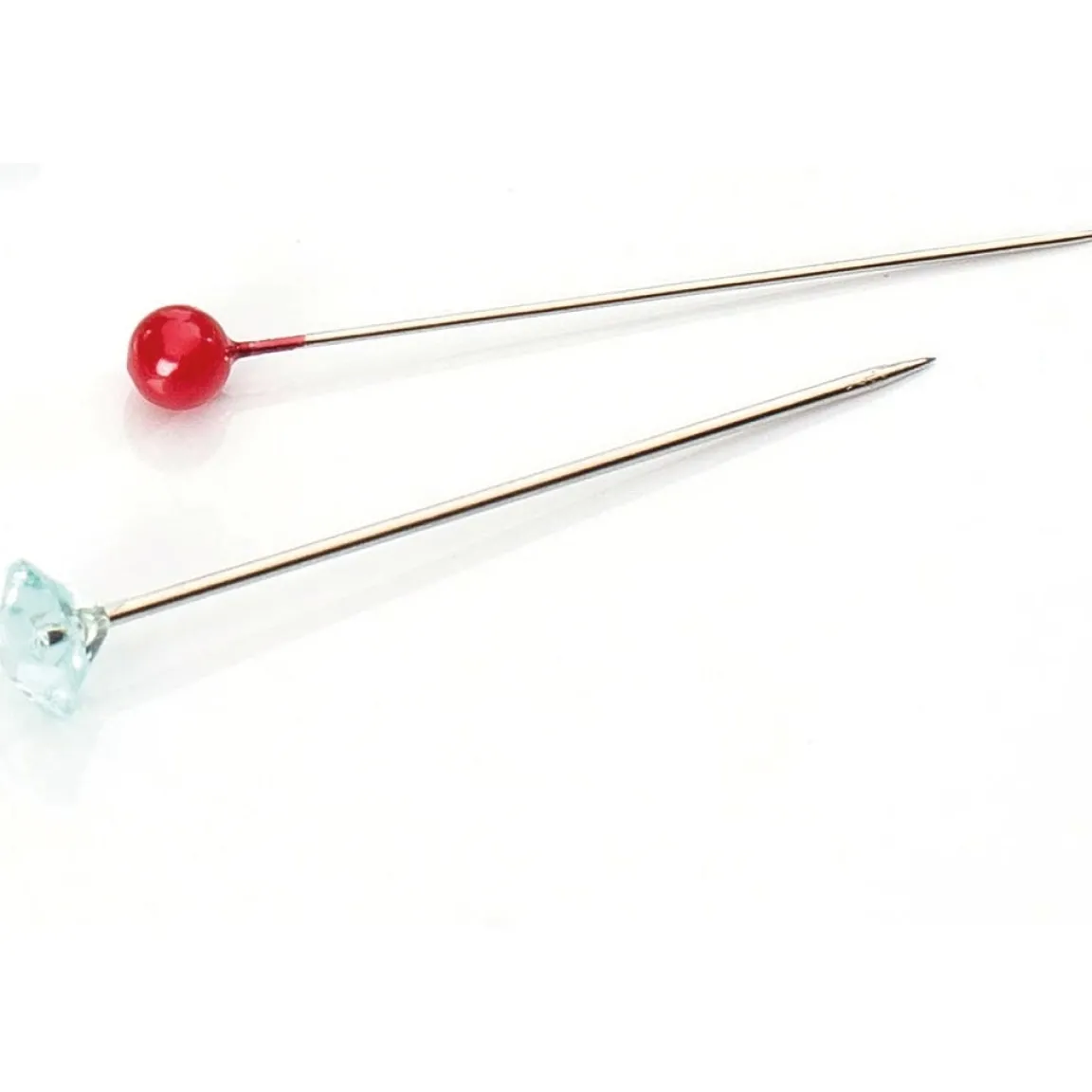 Notez l’originalité de ce lot de 80 épingles de couture avec tête en forme de perle ronde ou à facettes de couleur assortie. Elles sont facilement visibles sur les ouvrages de couture, les ourlets, les patrons. En acier et matière plastique. Longueur épingle : 35 mm.