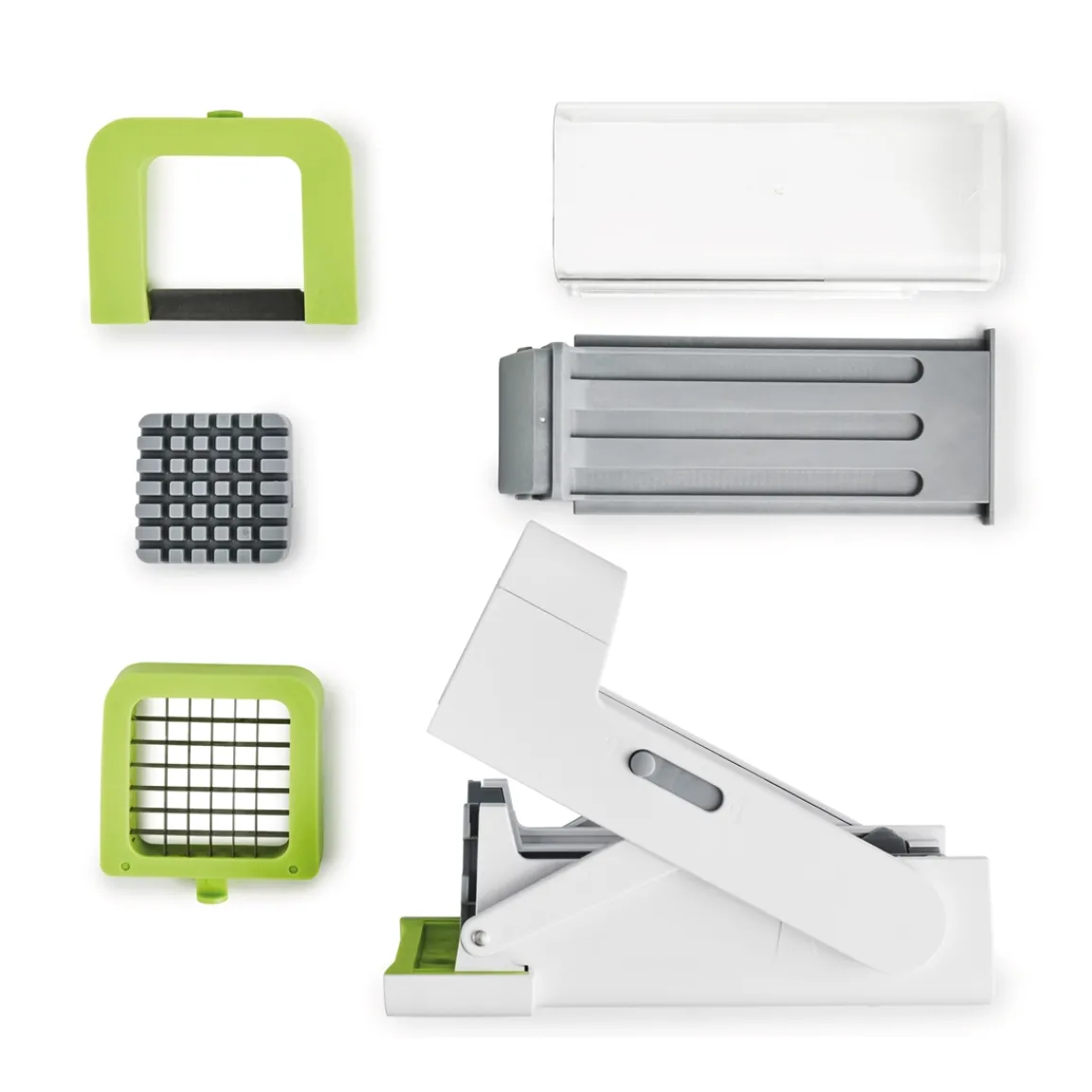 Gagnez un temps précieux en cuisine avec cet ustensile performant et facile à utiliser, qui vous permet d’obtenir des frites parfaites et des brunoises régulières en un clin d’œil ! Il dispose de 2 lames : 1 pour les frites + 1 supplémentaire pour les brunoises. En matière plastique, lames en acier inoxydable. Dim. 12,5 x 25 x 12 cm.