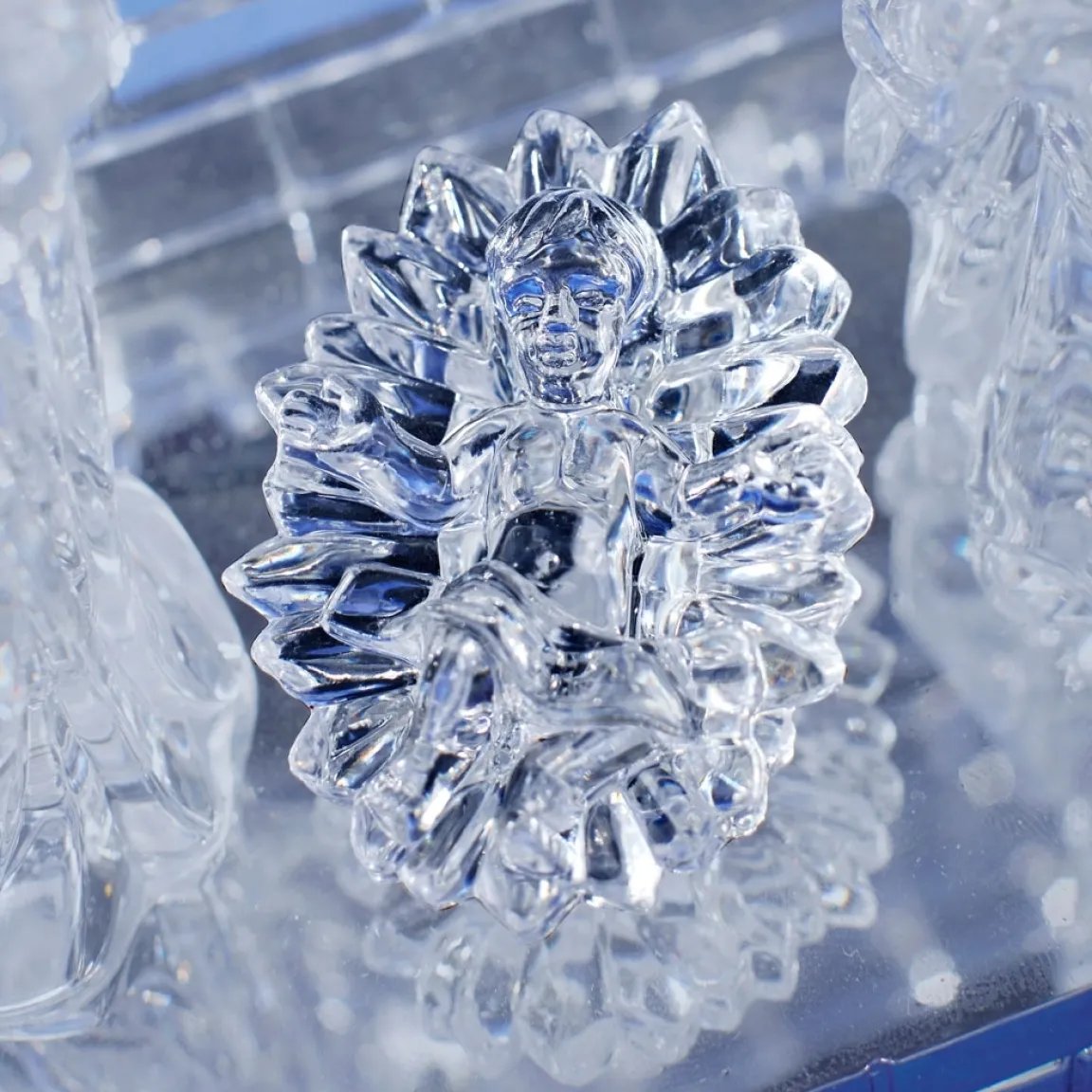 Instaurez une ambiance incroyablement magique avec cette crèche transparente ressemblant à une sculpture de glace. Lumineuse et sonore, elle offre un spectacle éblouissant : le point d’orgue de la décoration !