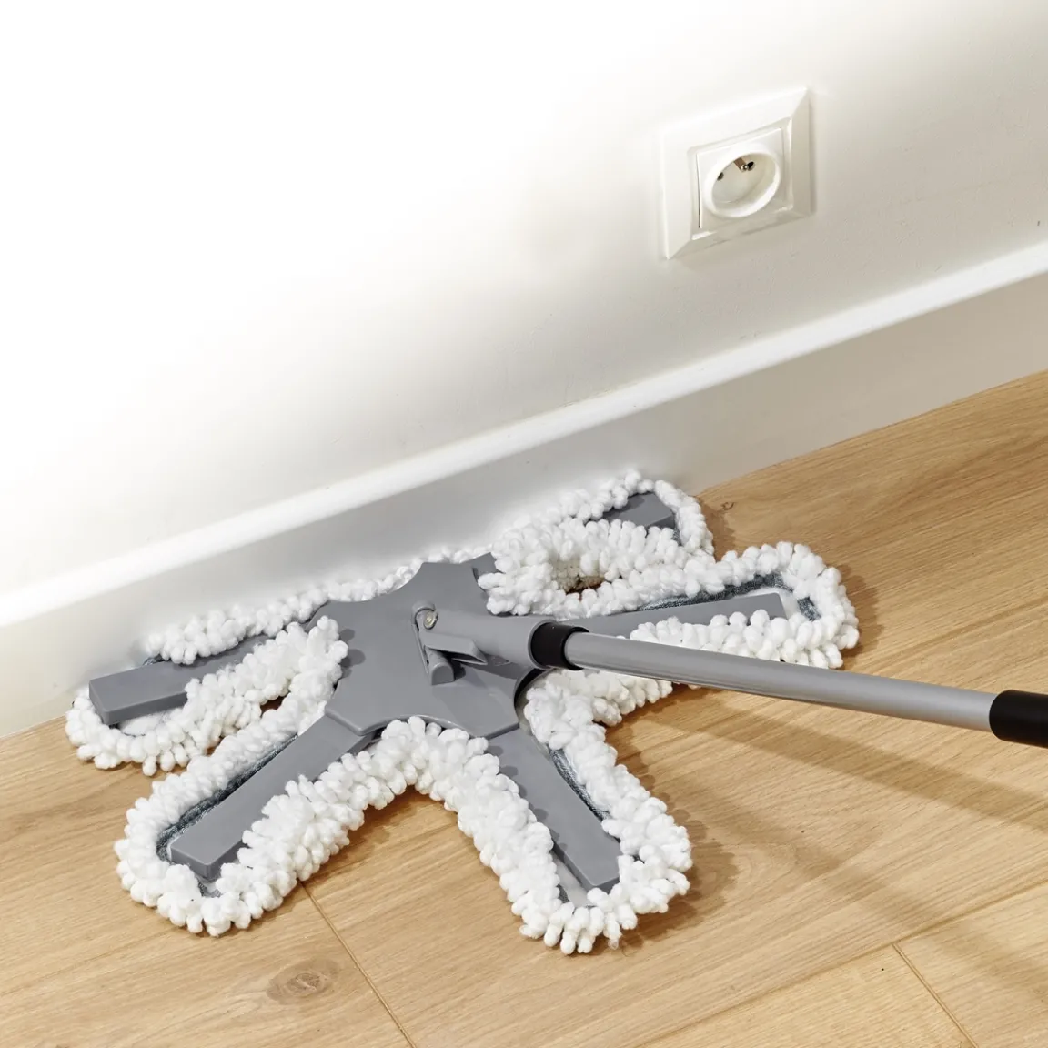 Avec ses 5 bras mobiles et son articulation à 360°, ce balai nettoie les espaces les plus réduits, les zones difficiles d’accès et atteint facilement tous les moindres recoins de la maison, sans même devoir déplacer les meubles !