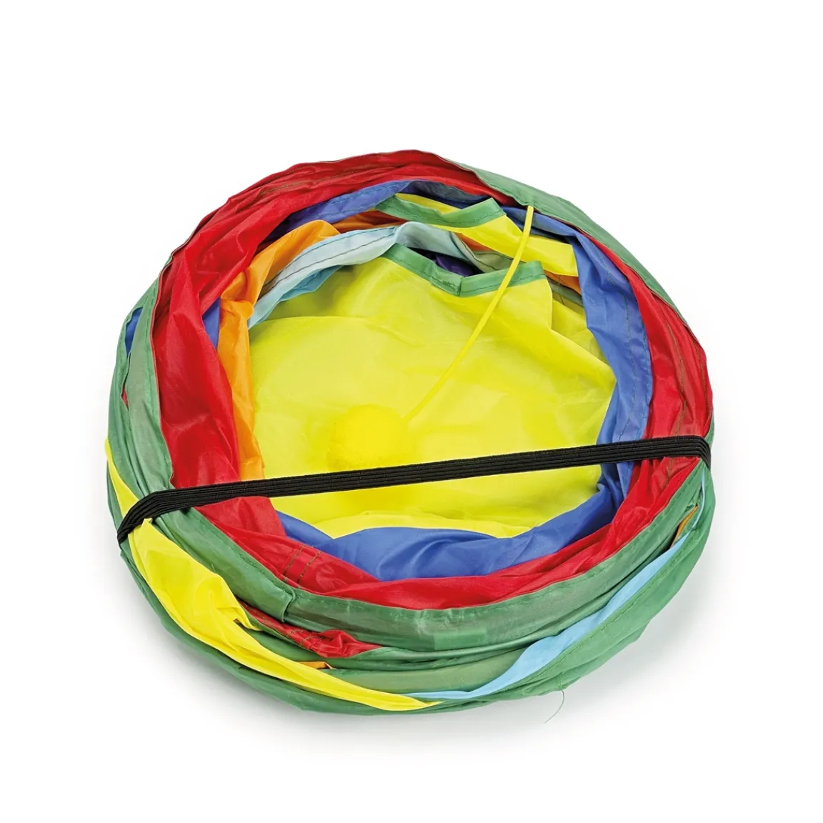 Votre chat va adorer explorer ce tunnel, s’y cacher, y rentrer d’un côté et sortir de l’autre ! Il aimera aussi s’y reposer à l’abri des regards et s’amuser avec le jouet suspendu. Ouverture à chaque extrémité (diam 24 cm) + trou sur le dessous (diam. 15 cm). Longueur de chaque bras : 33 cm env. En polyester avec armature métallique.