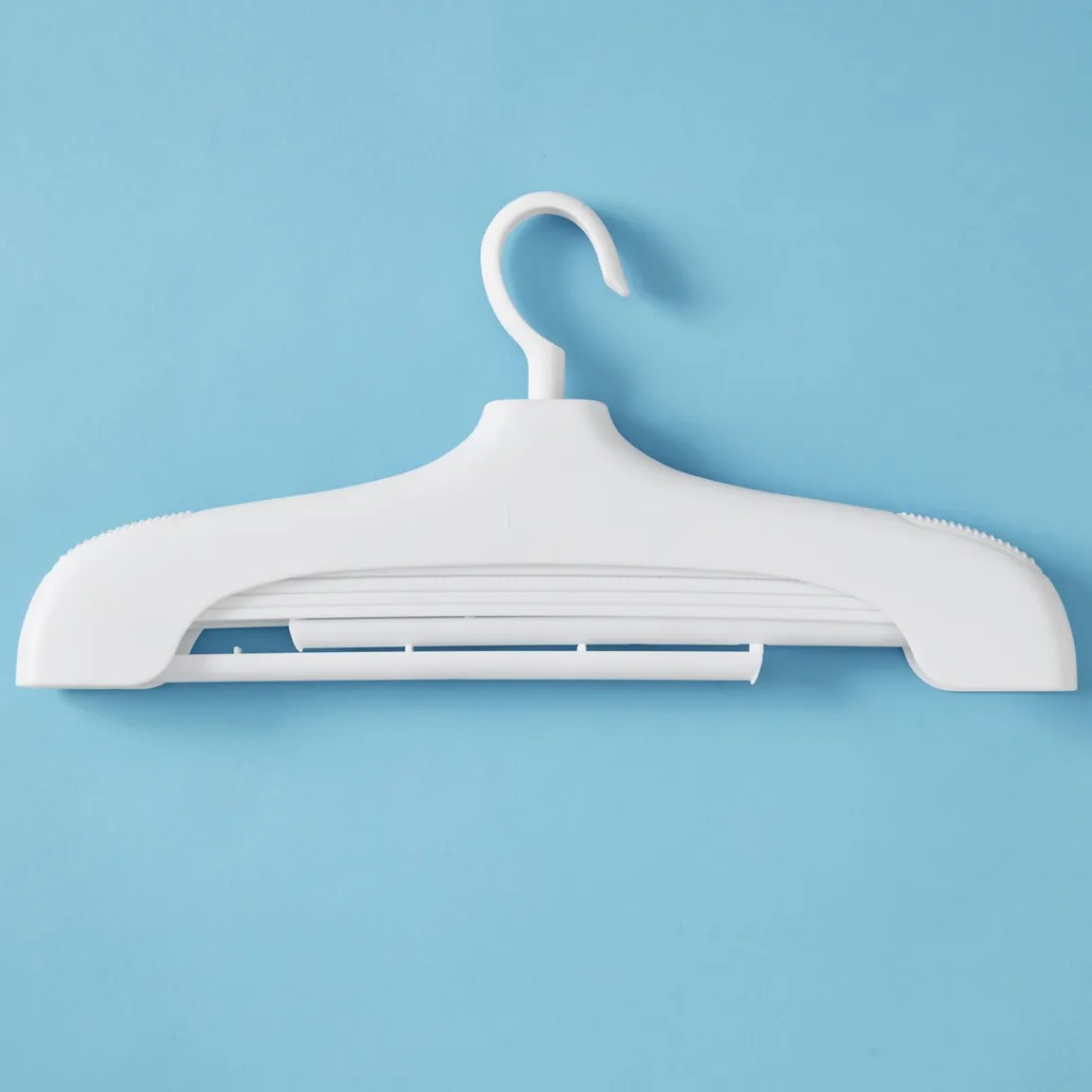 Un simple cintre classique, qui, une fois déplié, est capable de suspendre jusqu’à 4 pantalons sans prendre plus de place dans votre armoire ! Crochet entièrement rotatif pour plus de praticité.