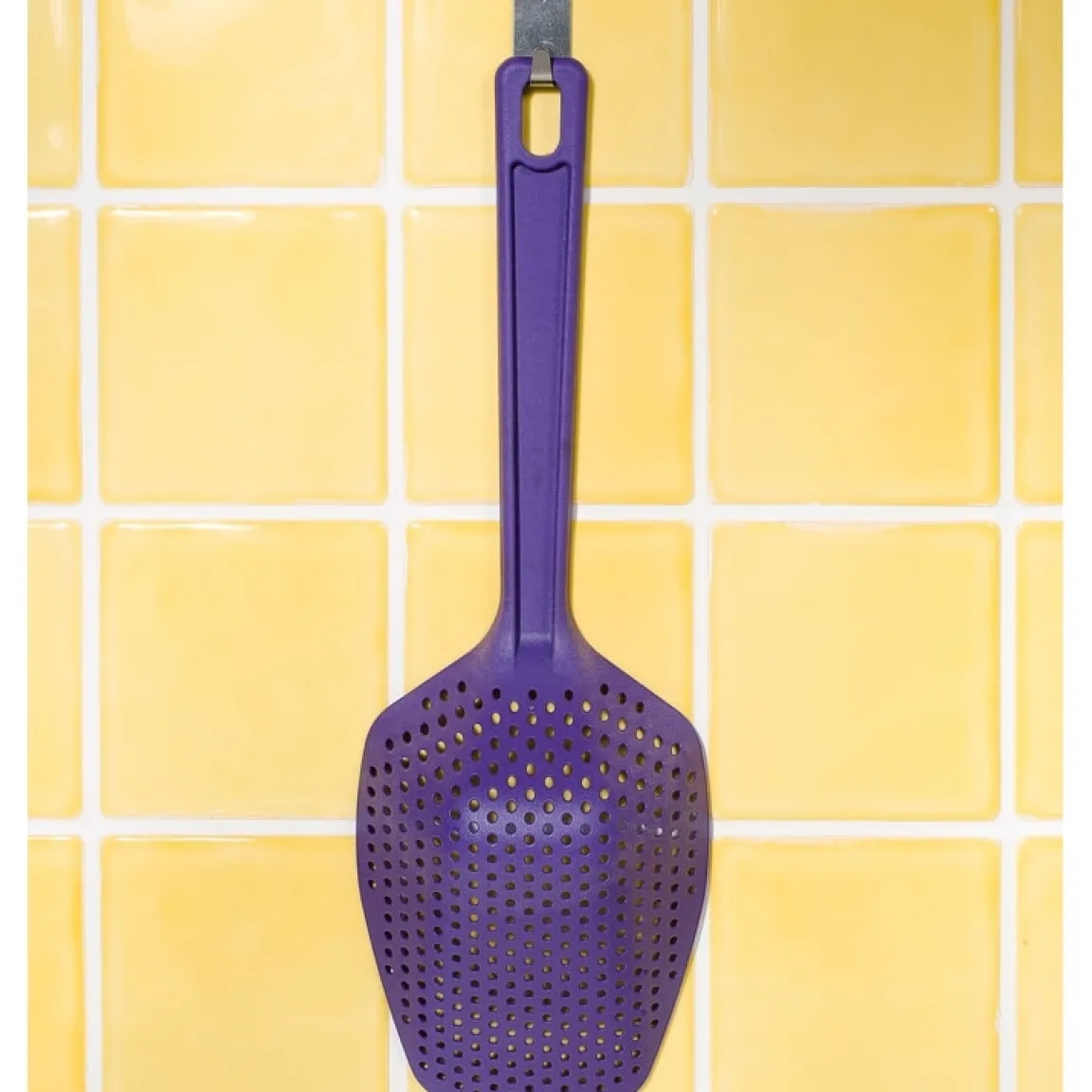 Un accessoire unique et un seul geste pour une double action rapide et facile à exécuter. Bien large et profonde, cette louche écumoire idéale pour le service des légumes, sait aussi se rendre utile pour égoutter les pâtes ou retirer les aliments de la friture (résiste à 240°C).