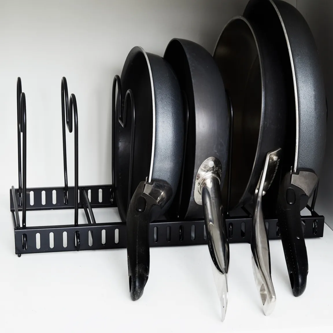 Un support extensible, idéal pour optimiser le rangement des poêles et couvercles