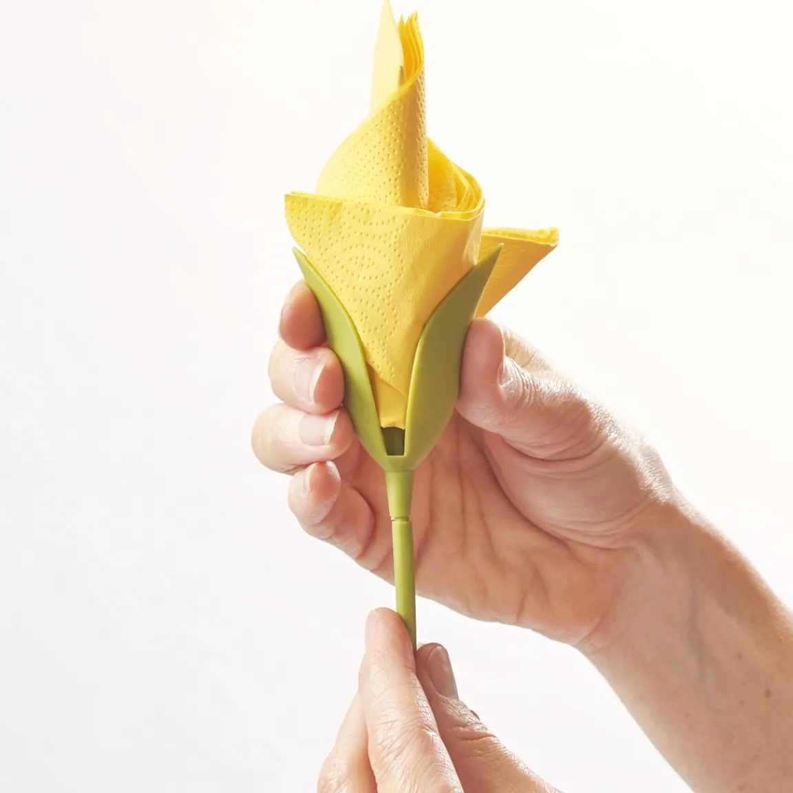 C’est facile : pliez la serviette, insérez-la dans la tige puis tournez… La tulipe est réalisée ! A disposition des invités, ces jolies fleurs serviront de porte-serviettes, tout en faisant plein d’effets !