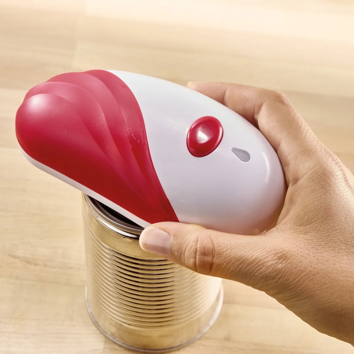 Avec cet ouvre-boîte électrique, vous ouvrez très facilement et en toute sécurité les conserves quelle que soit leur taille. Il suffit d’appuyer sur le bouton que l’on soit droitier ou gaucher. Fonctionne avec 2 piles AA non fournies. En matière plastique et acier inoxydable. Dim. 7 x 6 x 14 cm.