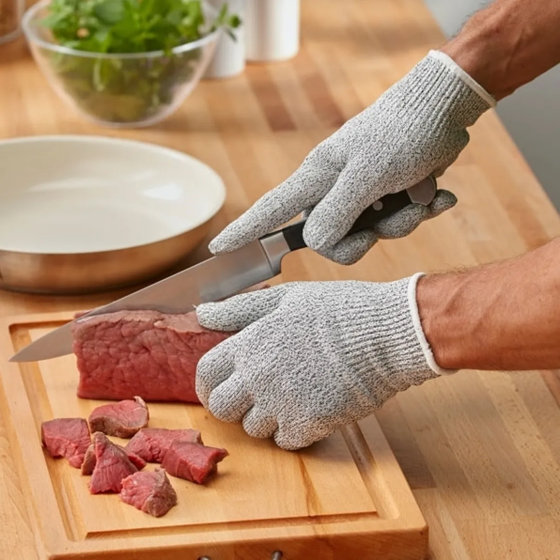 Leur matière et leur tissage particulier empêchent la lame des couteaux, râpes, outils, ciseaux de les transpercer et vous protège ainsi, parfaitement les doigts et les mains.