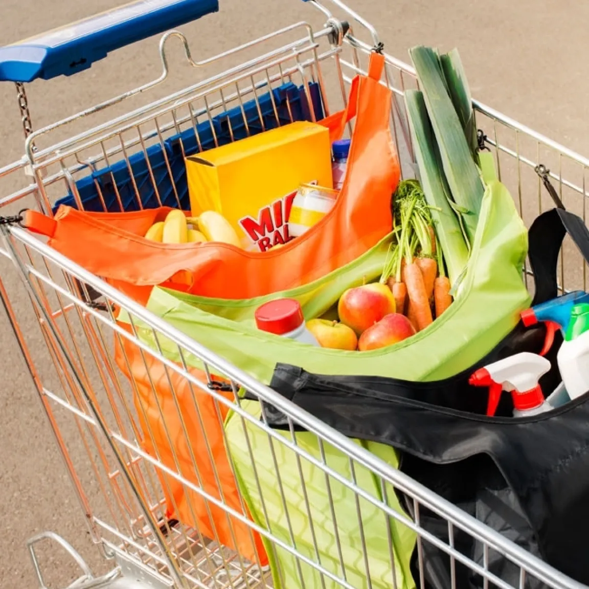 Avec ces sacs très pratiques vous ne regretterez pas la disparition des sacs en plastique ! Solides et de grande contenance, ils sont munis de crochets pour les maintenir bien ouverts dans le chariot. Leurs différentes couleurs permettent de trier les courses à l’avance pour que le rangement aille plus vite en rentrant à la maison. Lot de 3 cabas livrés dans leur pochette zippée. 100% polyester. Dim. d’un sac : 36 x 60 cm env. Contenance : 25 L.