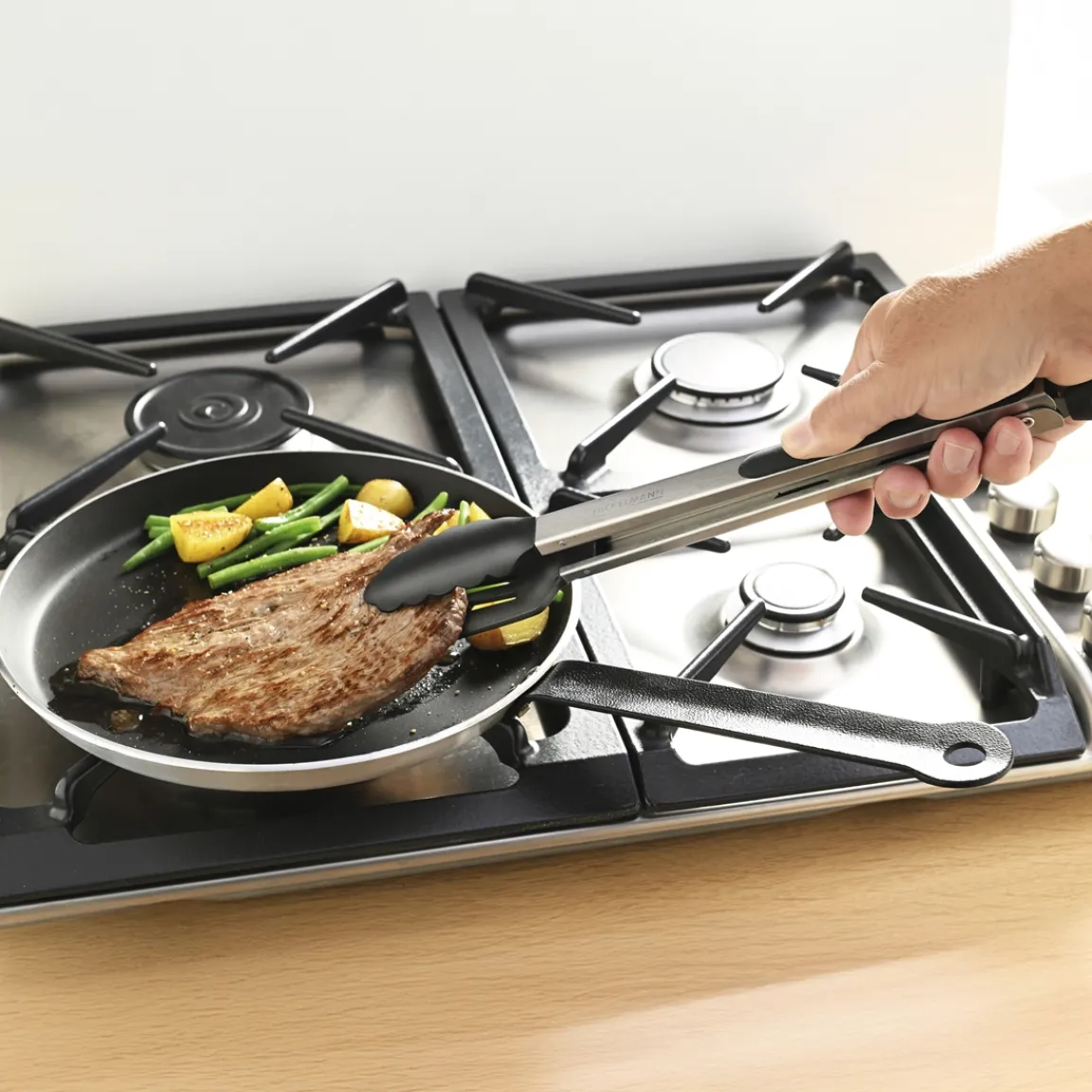 Optimisez vos gestes en cuisine avec cette pince innovante et extra-longue. Véritable 2-en-1, elle combine astucieusement une pince et une spatule, vous permettant de saisir, retourner et servir vos aliments en toute simplicité et avec une précision impeccable.